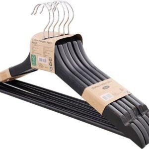 Luxe Houten Kledinghangers – Kleerhanger – Zwart – 12 stuks