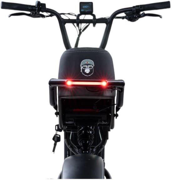 De Ape Ryder Jambo is gebouwd met het oog op dagelijks gebruik en comfort. De extra brede 20×4.5 inch banden zorgen voor uitstekende grip en stabiliteit op verschillende ondergronden – van asfalt tot gravel of zandpaden. Het stevige frame ondersteunt een draagvermogen van 120 kg, waardoor ook zwaardere berijders of extra lading geen probleem vormen. De antraciet grijze afwerking geeft de Jambo een tijdloze, minimalistische uitstraling die perfect past in zowel stedelijke als natuurlijke omgevingen.