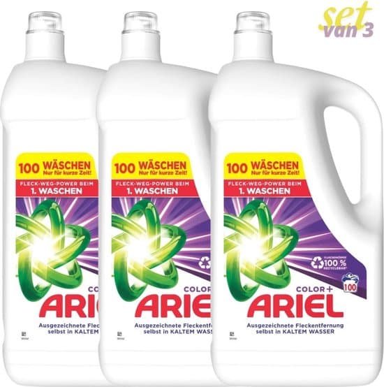De 3 flessen hebben een inhoud van 5 liter, dit is voldoende wasmiddel voor 3x 100 wasbeurten, totaal van 300 wasbeurten.