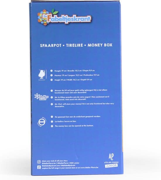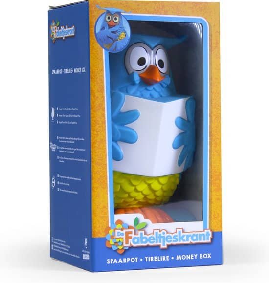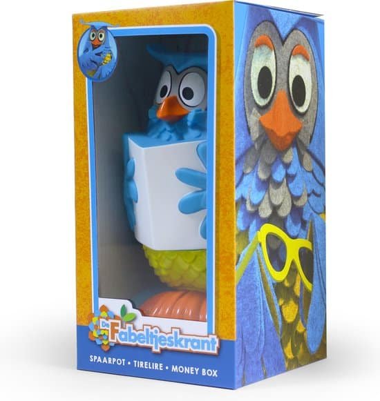 Meneer de Uil uit De Fabeltjeskrant nu als Spaarpot. Meneer de Uil, wie kent hem niet Bekend van de Fabeltjeskrant is hij de verteller van verhalen, ietwat langdradig en vergeetachtig, onderbreekt zijn zinnen vaak met “Eh” & eindigt ze met “Jawel”! Bekendste uitspraken van Meneer de Uil zijn “Dag, lieve kijkbuiskinderen” & “Oogjes dicht en snaveltjes toe”. Hij mag dan wat vergeetachtig zijn, maar hij zal zeker goed op al je paarcentjes letten, deze betrouwbare uil.