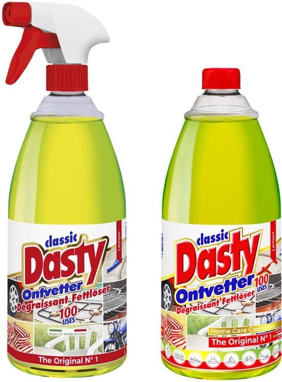 Dasty Ontvetter Classic is het ideale product voor de schoonmaak van zeer vervuilde oppervlakken zowel voor binnens- als buitenshuis. Ideaal voor minerale soorten vuil (verbrande olie, fijnstof etc.) en op de meest uiteenlopende typen oppervlakken (rolluiken, plastic of metalen tuinmeubels, grills, motoren, vlekken op stoffen, kunstplanten etc.) en tevens als vlekkenverwijderaar op kragen en manchetten voor de normale was.