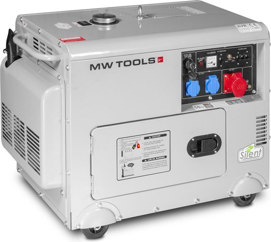 Geluidsarme dieselgenerator 4,8 kW op 1×230 V en 6 kW op 3×400 V, voor gebruik op de bouwwerf, indoor of outdoor events of als noodgenerator voor het bedrijf en de woning.
