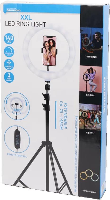 Met perfecte belichting maak jij de mooiste selfies. Dit statief met ringlamp is daarvoor ideaal. Ook handig voor bijvoorbeeld het filmen van vlogs. Je bevestigt je smartphone eenvoudig in de houder en kantelt ‘m naar wens. Voor elke setting heb je een passende kleur. Verander eenvoudig van kleur met de schakelaar. Deze lamp geeft je foto een finishing touch.