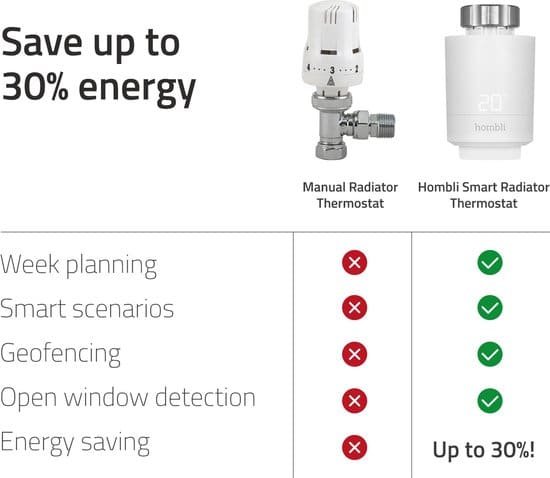 Door de Bluetooth Low Energy technologie gaan de twee meegeleverde AA-batterijen tot wel anderhalf jaar mee. Doordat de radiatorknoppen via de Hombli Bluetooth Bridge aan het internet zijn verbonden kun je ze altijd en overal via de Hombli app aansturen.