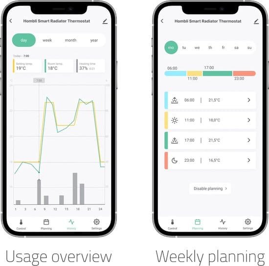 In de app kun je in een overzichtelijke grafiek bekijken wat de ingestelde en werkelijke temperatuur in jouw huis is. Hier kun je ook nauwkeurig per uur zien hoeveel minuten de verwarming heeft aangestaan. Zo weet je exact wanneer je onnodig aan het stoken bent en hoeveel je bespaard als je de temperatuur lager zet. Ook kun je per dag, week, maand zien hoeveel de verwarming in totaal heeft aangestaan, hiermee heb je direct inzicht in het totale verbruik van jouw verwarming.