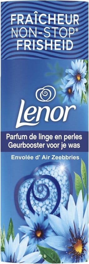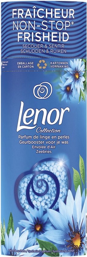 Ontdek de geurbooster voor je was van Lenor voor tot 12 weken langdurige frisheid in je kledingkast. Lenor geeft je kleding de heerlijke geur van een Zeebries. Deze verfrissende geur geeft je het gevoel dat je van een dagje aan zee aan het genieten bent. Een schone geur die is samengesteld uit geurharmonieën van groene kruiden en zeewater, zoals het water van de zee, bloemige lelietje-van-dale-accenten en bruisende citrus. Lenor geurboosters voor je was hebben voortaan een vochtbestendige, recyclebare kartonnen verpakking.