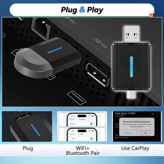 - Voor Apple CarPlay: Om gebruik te maken van de 2-in-1 Car Dongle, moet je auto beschikken over een ingebouwd Apple CarPlay-systeem met ondersteuning voor bekabelde CarPlay (vanaf 2017). Verbinden werkt alleen met iPhones met iOS 10 of hoger. Controleer hier of jouw auto CarPlay ondersteunt: Apple CarPlay Beschikbaarheid.