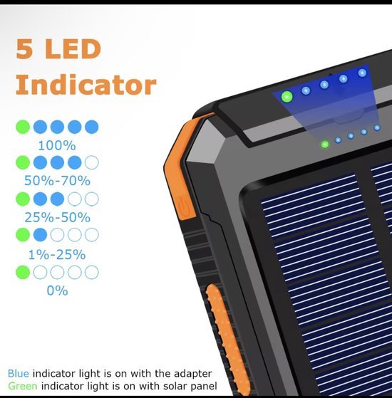 Ben je op zoek naar een betrouwbare en veelzijdige powerbank die je nooit in de steek laat, waar je ook bent? Onze Solar Powerbank met een capaciteit van 20.000 mAh is speciaal ontworpen voor avonturiers, reizigers en iedereen die graag voorbereid is.