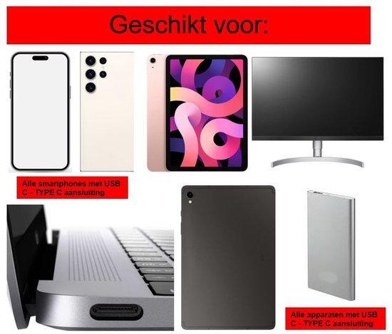 - Geschikt voor: Laptops, telefoons, tablets, camera’s en andere USB-C apparaten